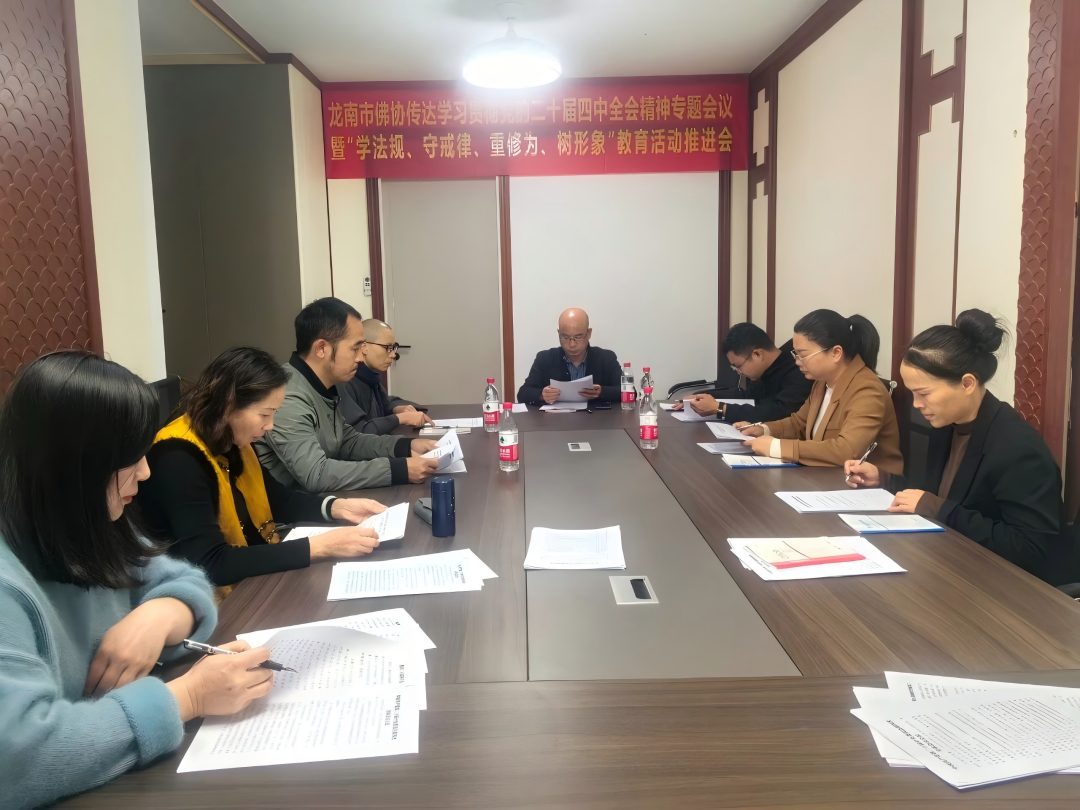 12月2日上午,龙南市佛教协会组织召开学习贯彻党的二十届四中全会精神专题会暨“学法规、守戒律、重修为、树形象”教育活动推进会。龙南市佛协常务理事、教风委员会成员参...
